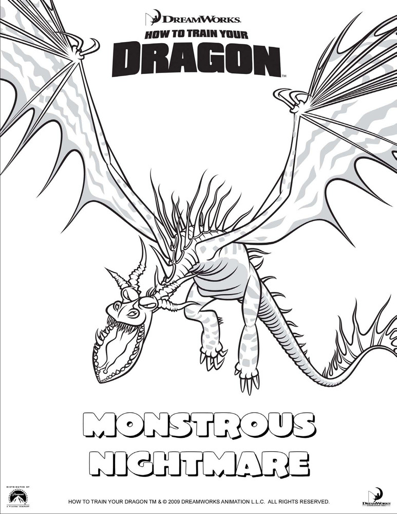 Dragón del tipo Pesadilla Monstruosa. Dibujos para colorear de Como Entrenar a tu Dragón.