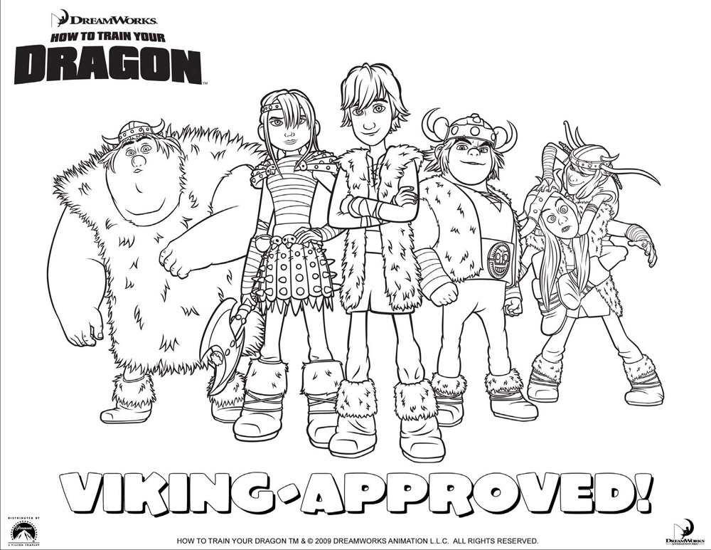 Todos los personajes juntos y unidos. Vikingos de Isla Mema. Dibujos para colorear de Como Entrenar a tu Dragón.